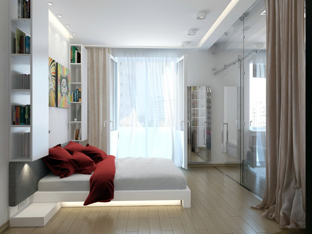 In addition to visual expansion, designers are also faced with another task: to make the bedroom fully functional, containing everything necessary for a comfortable sleep, relaxation, pastime.