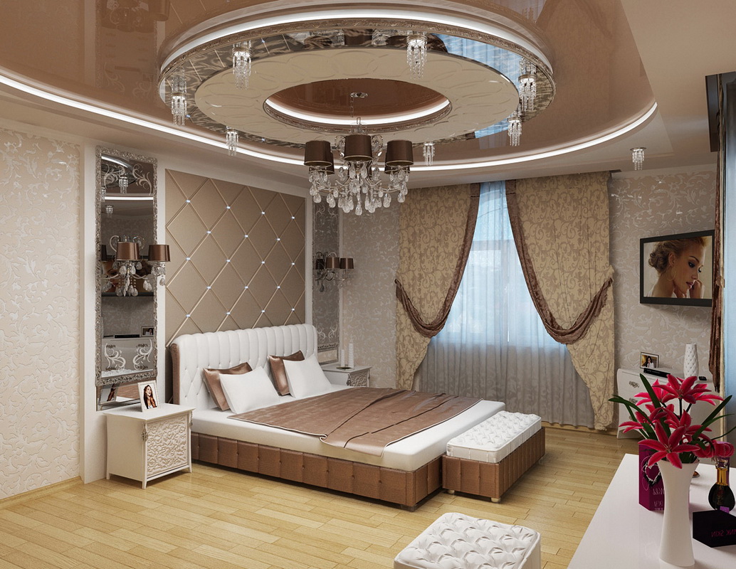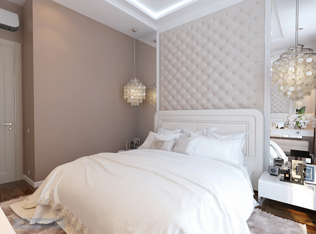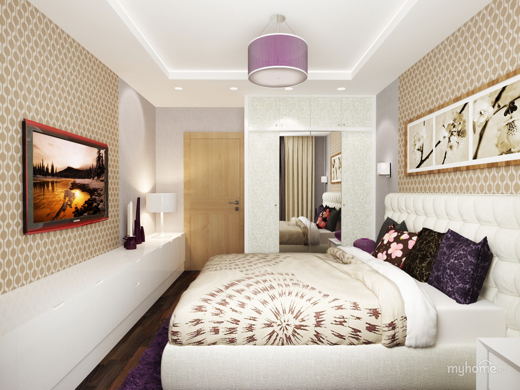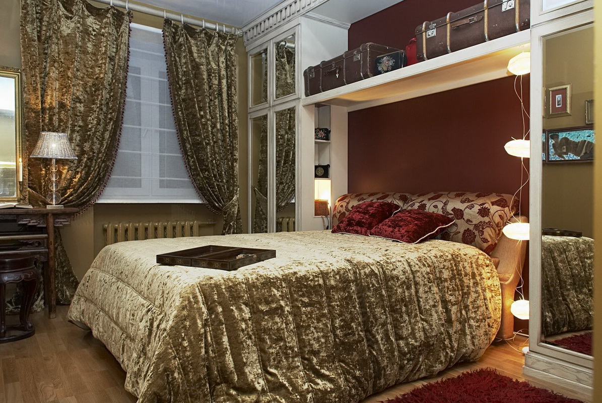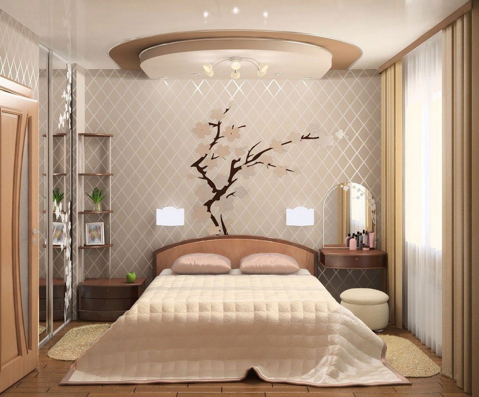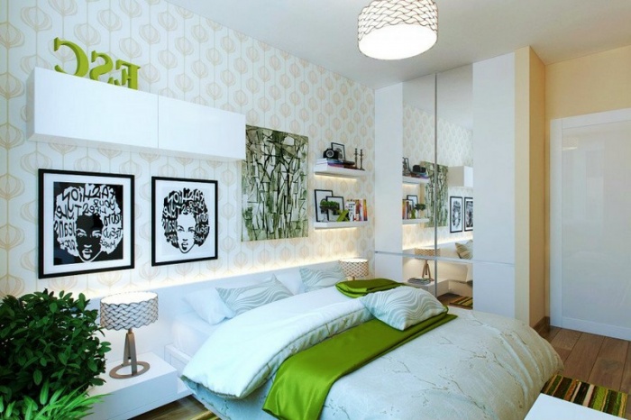 AT small bedroom every centimeter is important, so use space with benefit. It is better if it will serve the beautiful, that is, jewelry and the creation of a complete design style.