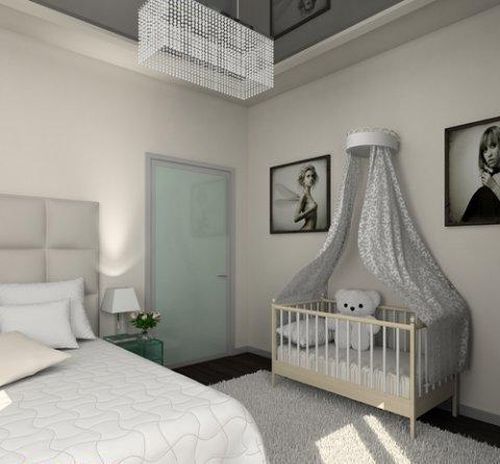 Design of a matrimonial bedroom with a nursery it is necessary to organize so that everyone feels comfortable and relaxed. The place of sleep of the crumb should not be made a central element.This space is primarily owned by adults.