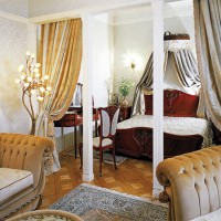 Thanks to this, you will be able to combine two rooms in a small area, so even with the correct layout and combinatorics of furniture and other accessories, you can bring comfort and coziness to your room. After all, the true purpose of the rooms is fundamentally divided - a bedroom, intimate, designed for relaxation, sleep, restoration of strength and energy. Living room - a common room designed to receive guests.