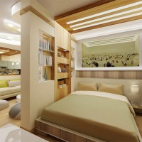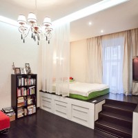 Otherwise, you will get overloaded space. A good helper in this will be modular, transformable furniture. Armchair - bed at night will serve as a place for sleep and relaxation, and in the daytime it is quite a comfortable armchair, with an internal niche for storing bedding. A table - a book in ordinary time transforms into a bedside table, but if friends or relatives descend (as always, unexpectedly), it will serve as an object around which you will seat your guests.
