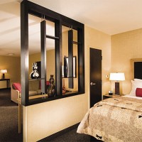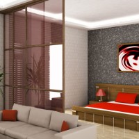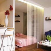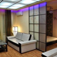 Glass looks beautiful and modern, and when the light inside the other room is unusual and mysterious. Fabric partitions or bamboo partitions, as an option, can be used for zoning the room. But you will have to take into account the overall style of the room and observe whether they fit into the overall interior.