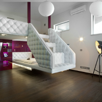 It is good to conduct experiments with lighting of varying degrees of intensity, which will help to highlight accents in necessary zones in more detail. In addition, use some tricks: a closet - a compartment today will be the best solution for practicality and aesthetics, a bedside table under a TV clutters the space - use a swivel hinged bracket for a better view from all points of the room.