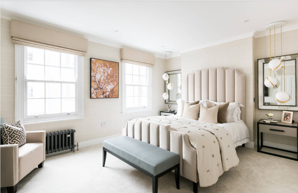 As already mentioned, color affects perception, but is not decisive in the interiors of beautiful bedrooms. This is just a way of embodying an original idea or a stylistic solution.