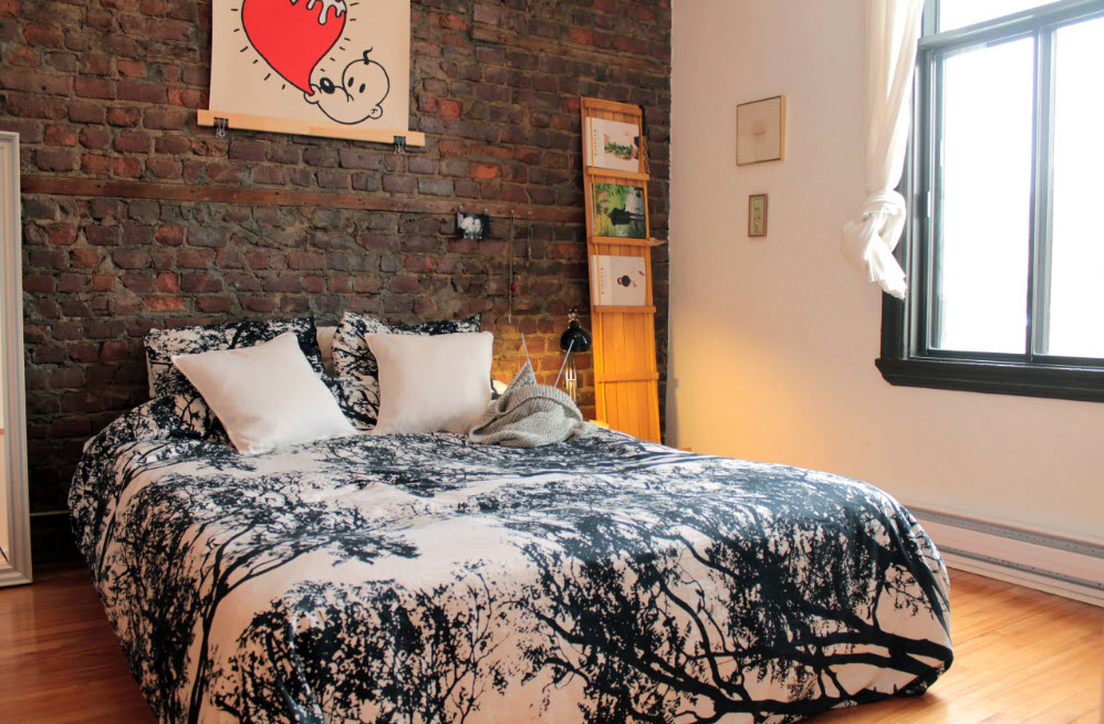 If you want to add a twist to the bedroom, hang on the wall an original photo, monochrome picture or poster