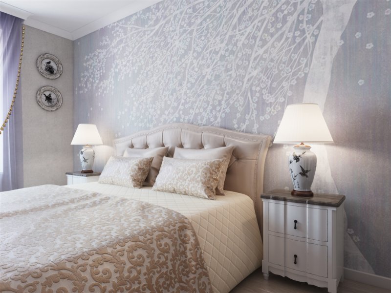 Wallpaper with floral patterns painted in soft tones of the wall - typical features of a provincial style
