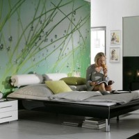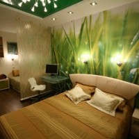 In the bedroom, we not only fall asleep, but also wake up. Ideally, the interior should be such that you want to fall asleep in the evening, and in the morning it was easy to wake up and stand up in a good mood. Cold, that is, blue and greenish shades, are considered calming, and warm colors are invigorating. But it is better to try to stay in the middle ground. Many shades of green are ideal for a bedroom.It is these colors that are often found in photo wallpaper with landscapes.