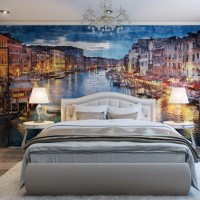 Usually calm landscapes are used to create a peaceful atmosphere. Meadows, gardens, dawn in the mountains, the seashore - these murals are often placed behind the head of the bed. If you like the urban landscape, you can choose from a variety of wallpapers with a slightly blurred urban landscape. They are not too contrasting, so they look good in a bedroom. It is usually placed on the wall where the head of the bed is.