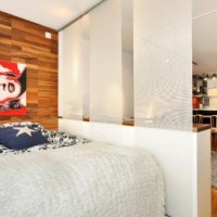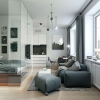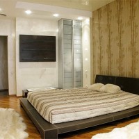 The room does not have to be divided into zones. Then all the interior elements are made in the same textured style. In such a room, an automated bed can be provided, leaving for the ceiling, so that the entire area is used during the day.