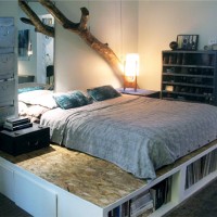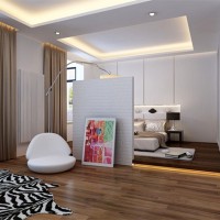 In a balanced space there is a bed or a large mattress on the podium, which is covered with bed linen. The rest becomes a resting place. They put a sofa there, install a TV on the wall, decorate with paintings or build an aquarium.