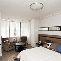 In a large room provide a small corner, having built a separate room. This is easy to do with a partition using drywall. Then the room will be divided into zones. Well, in a small room they use space to the maximum. At the same time, everything should be suitable colors and unobtrusive for perception. Favorite decor elements, of course, leave. But it’s important not to pile up the interior.