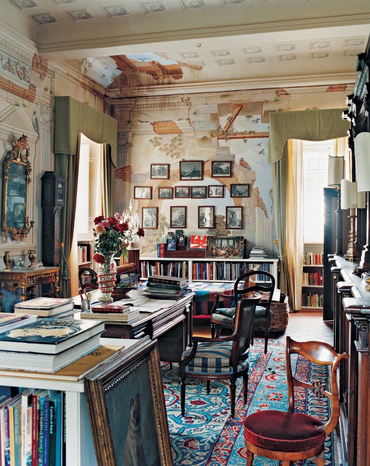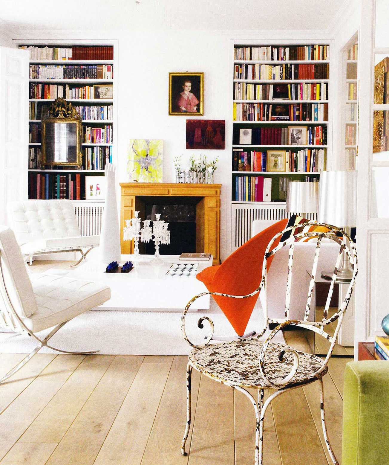 A place for receiving guests implies a certain number of chairs and armchairs. They are selected not in accordance with one style, but based on the mood (you can make each chair individual).