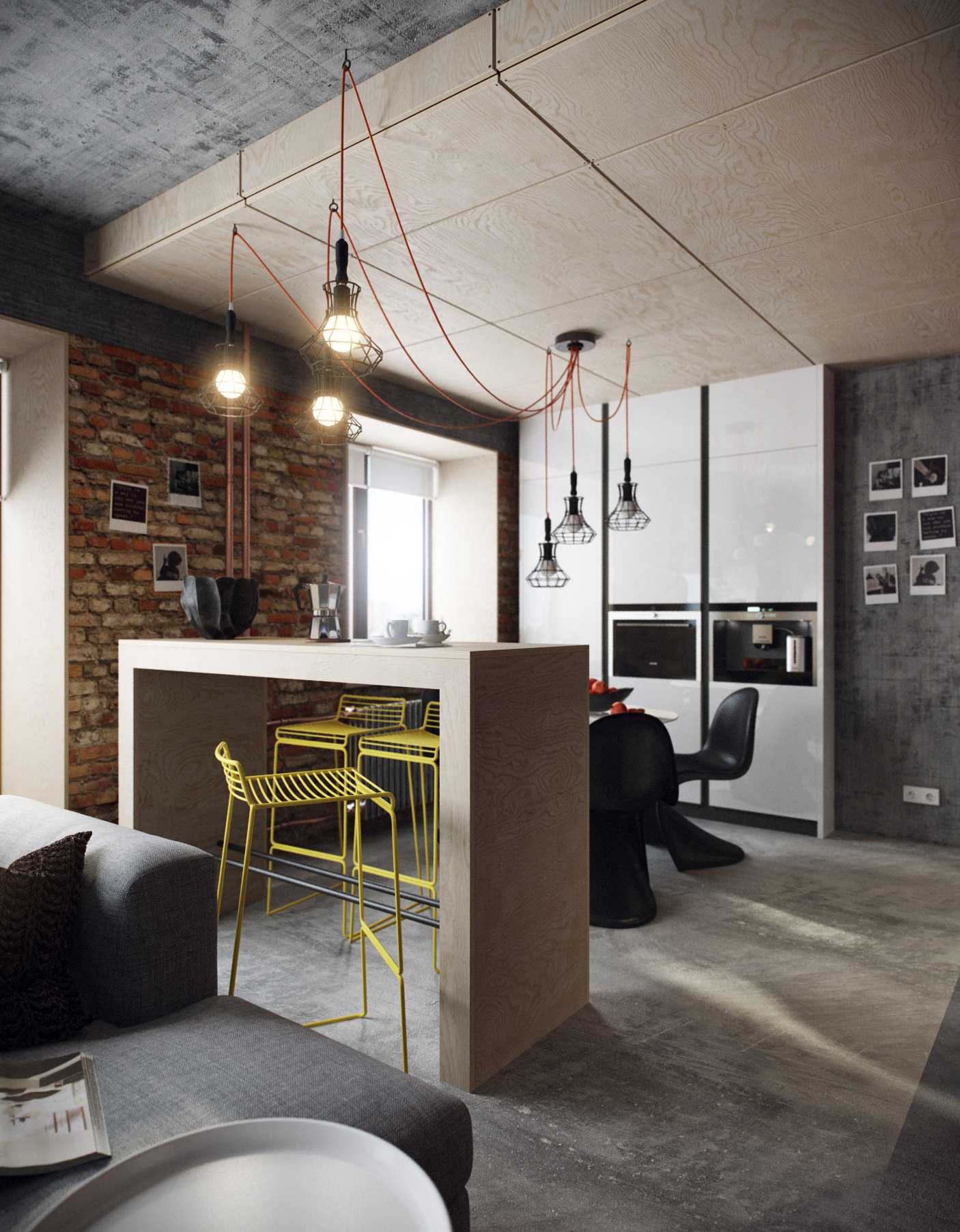 To stylize the industrial style in a small or large apartment or studio, apply: