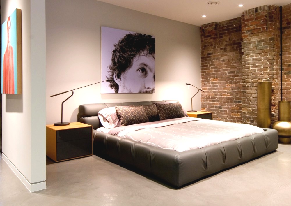 The loft style bedroom can be separated from the rest of the room with shelves, canopies or equipped on the second floor. A large bed of steel with "balls" in the corners, enough for a couple of nightstands and a little light.