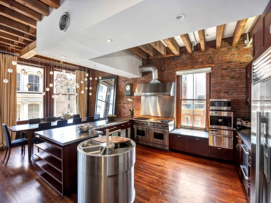 Brick, concrete and stainless steel kitchen