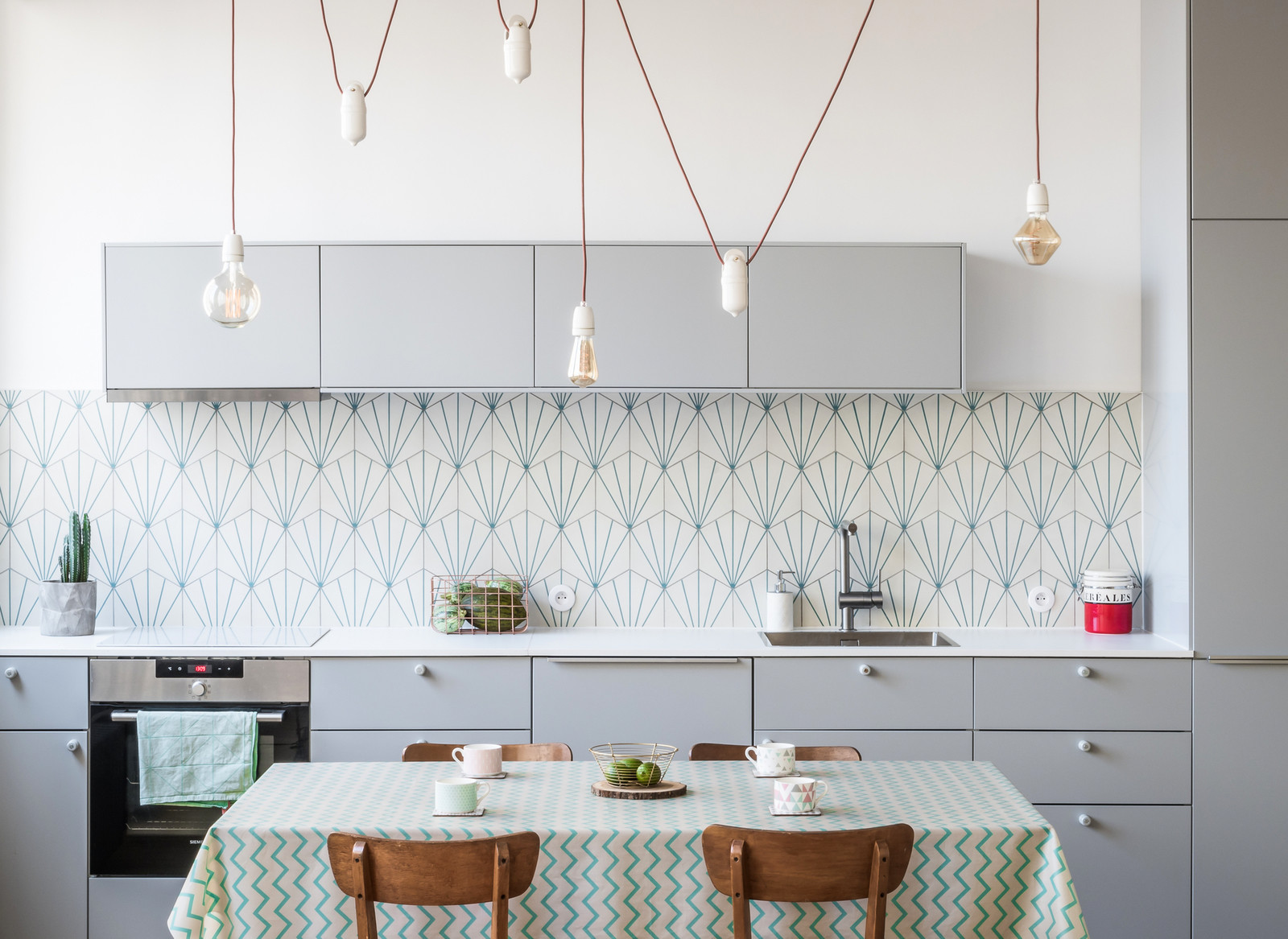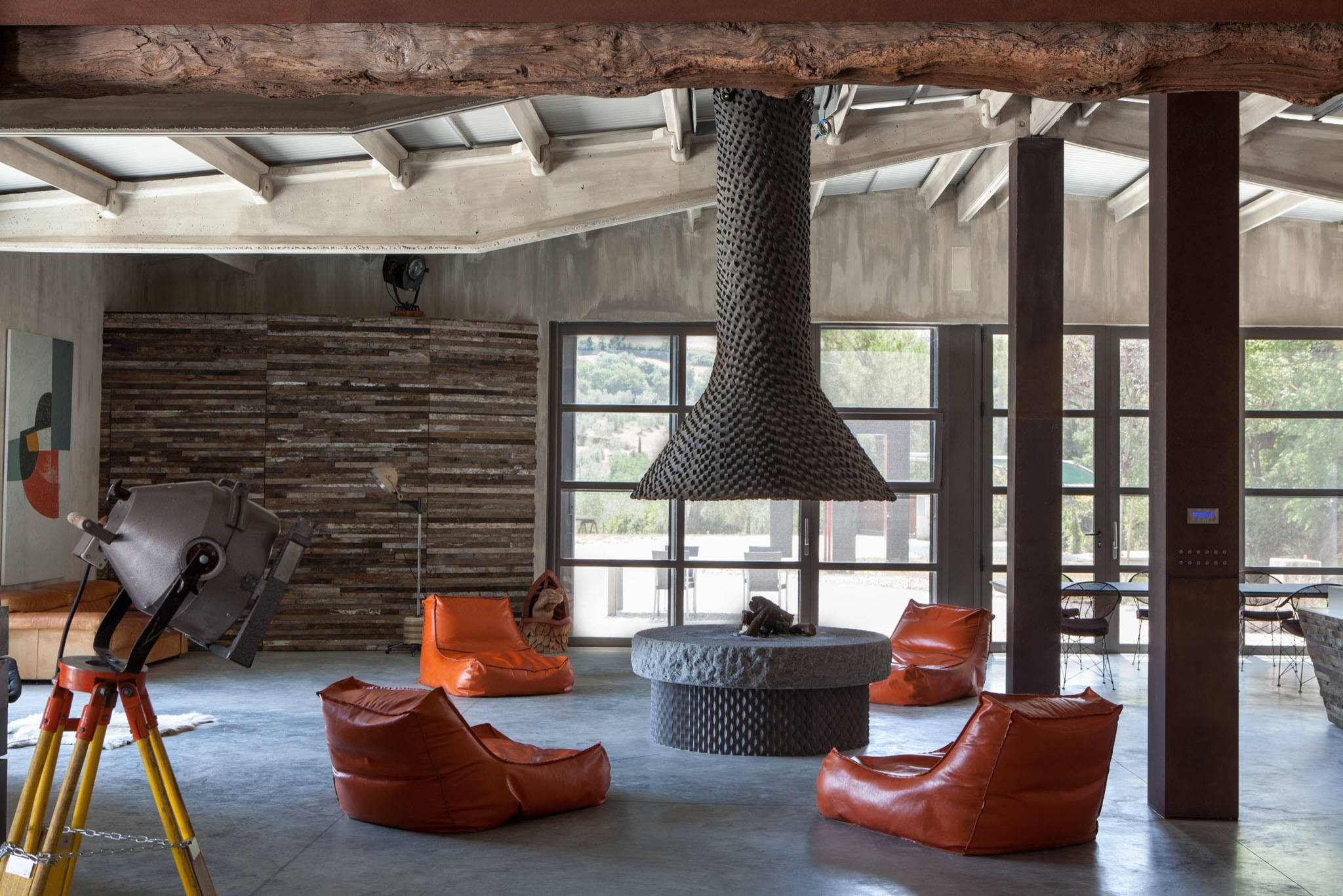 - "Factory" lighting - huge pendant lamps;