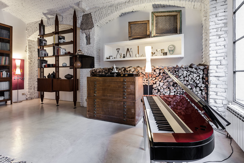 Of furniture, you should prefer multifunctional, easy to care for, the most durable, strong. The room will not do without an ultramodern technique that will look eclectic against the background of rough walls without decoration.