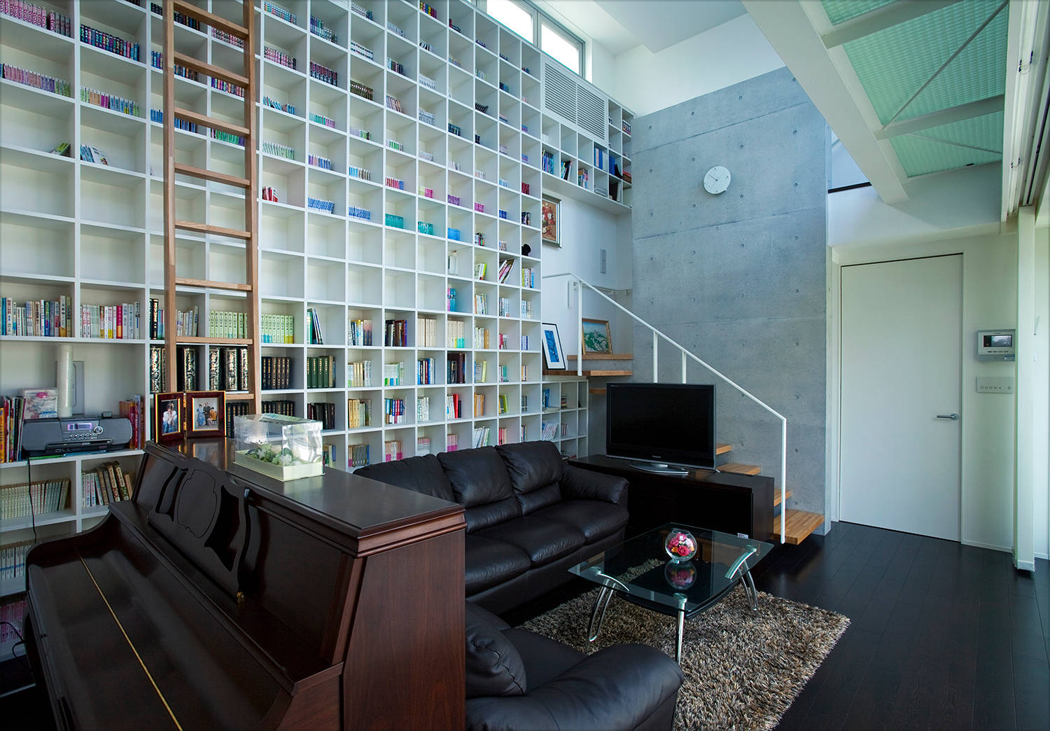 High ceilings make it possible to make two levels in the home. The stairs leading upstairs can be made forged, vintage, from rough wood or concrete. On the second floor there are bedrooms, a study.