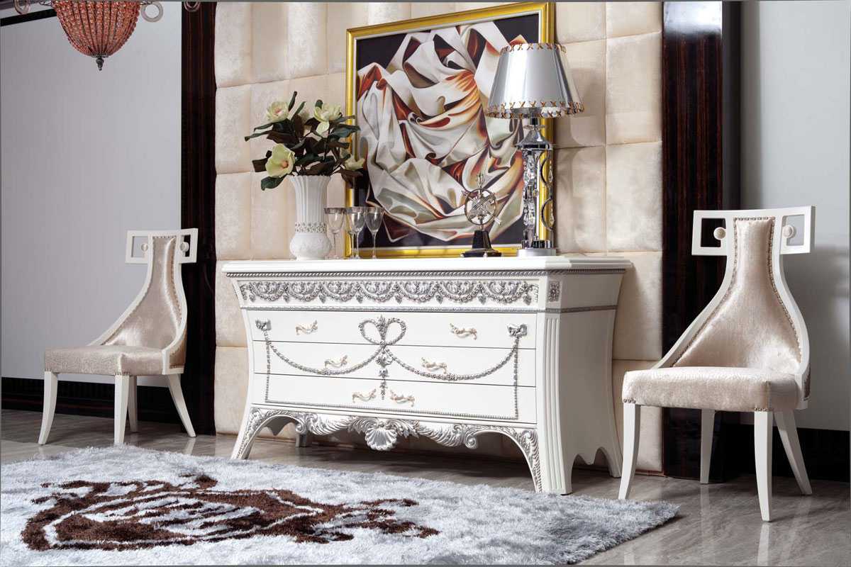 When buying a bed in the bedroom, pay attention to the wide double models with forging on the head. They are in catalogs offering products for this style. Often, furniture manufacturers exhibit sets of sets with a bench and a bedside table for general decor. If you can’t do without a closet, pick up a “compartment”, where the sliding doors are decorated with frosted glass and an exquisite pattern that emphasizes the choice of this style.