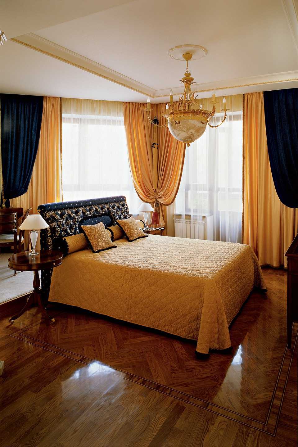 Tip: Choose wall sconces on both sides of the bed, a full-length floor lamp by the mirror and a luxurious chandelier with a "floral" design. They are best selected according to the catalog of lighting devices. Soft streaming light should emphasize a soft pastel range with dark contrasting inserts and ornate patterns.