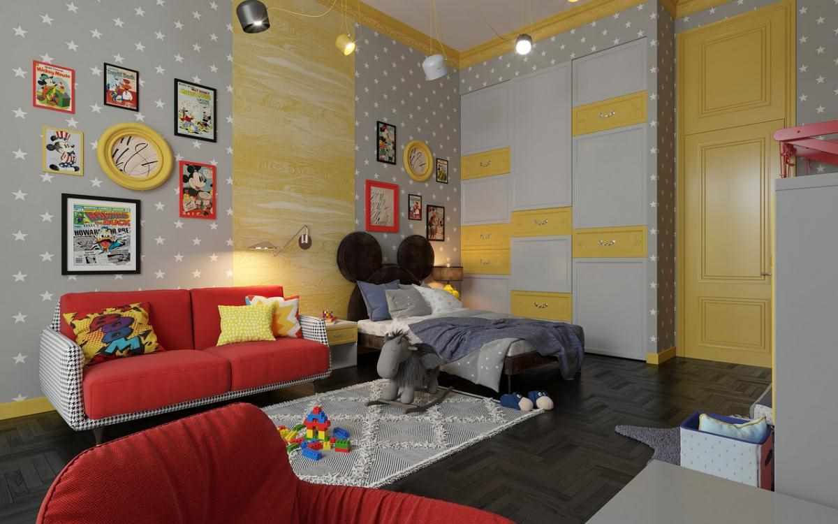The room in the style of pop art will look modern and beautiful.
