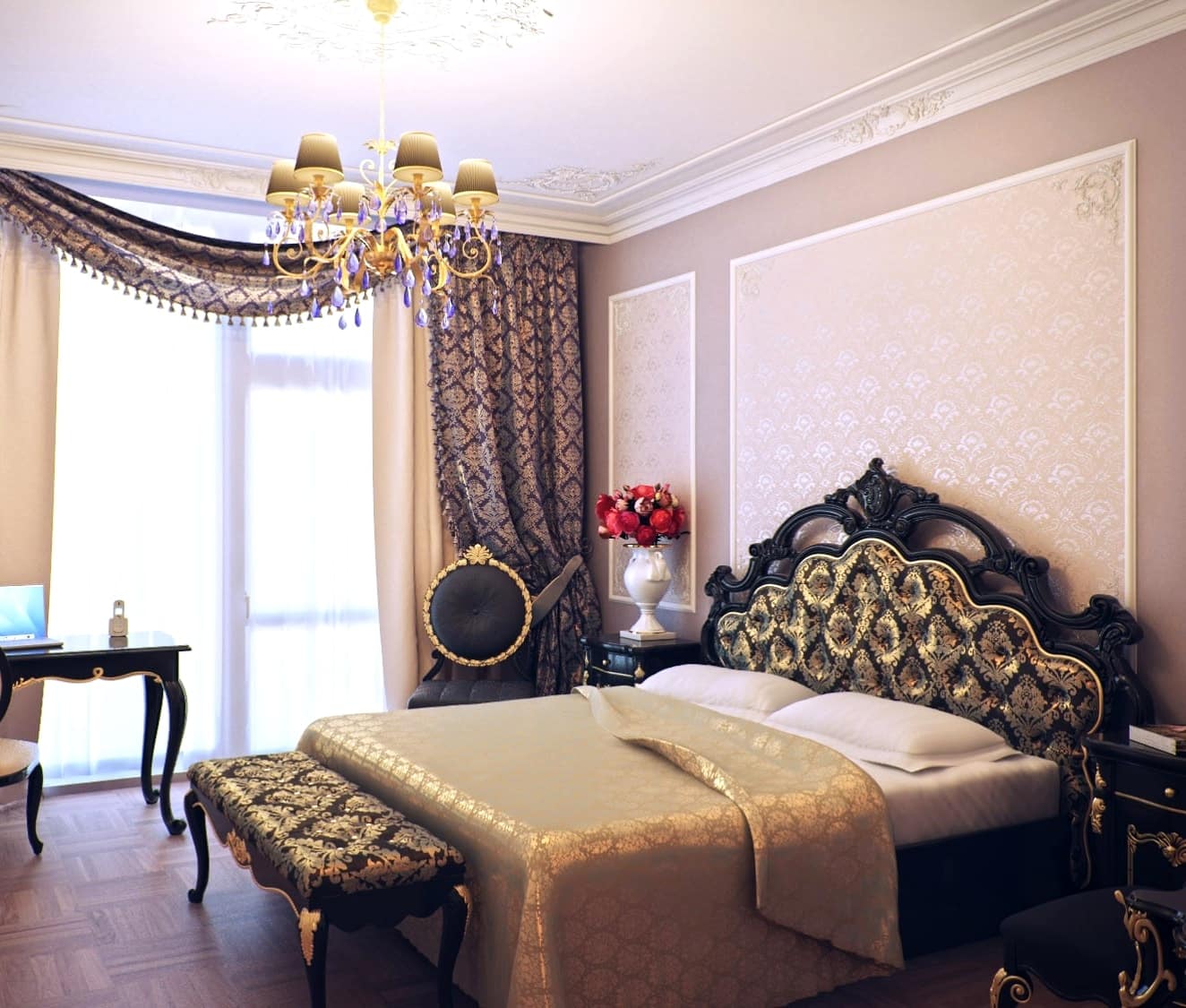 Chic rococo bedroom design