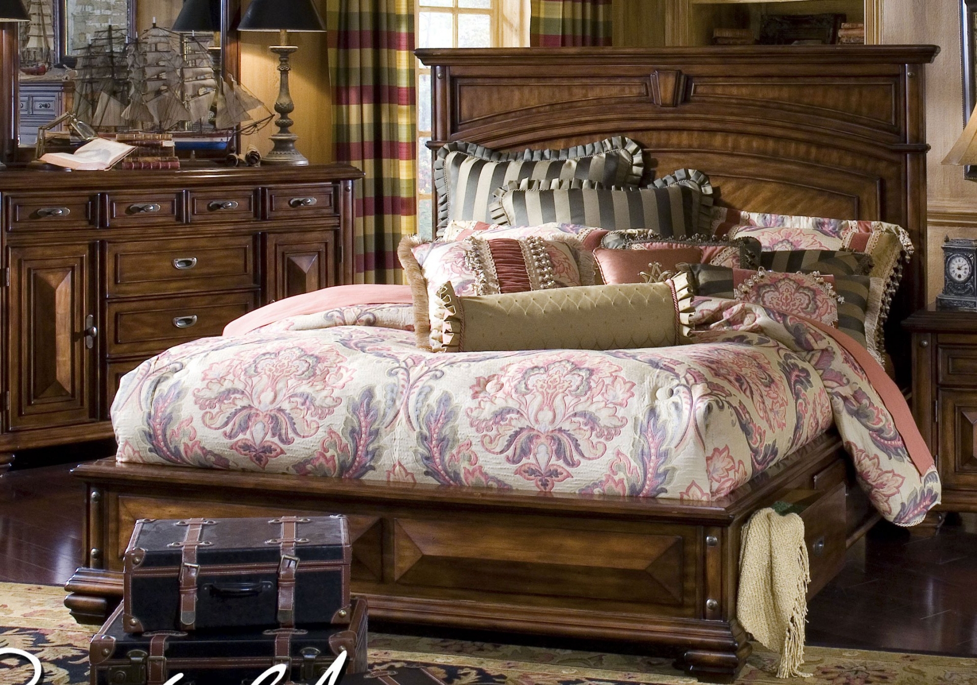 - expensive textiles, luxurious designs on fabrics;