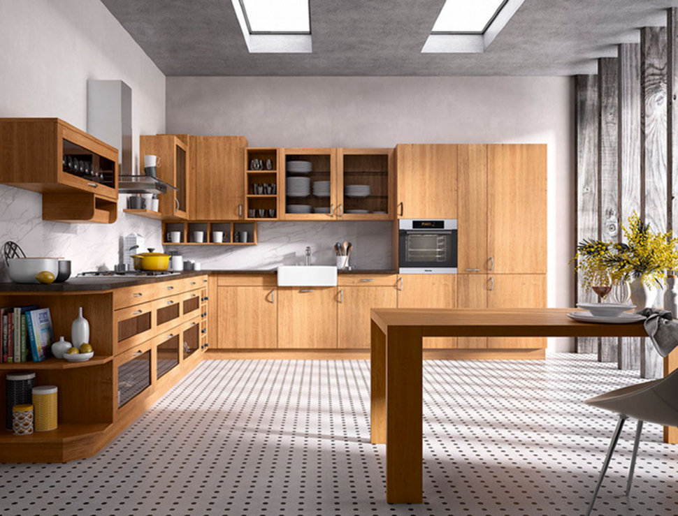 The classic brown kitchen is a variant with wooden furniture