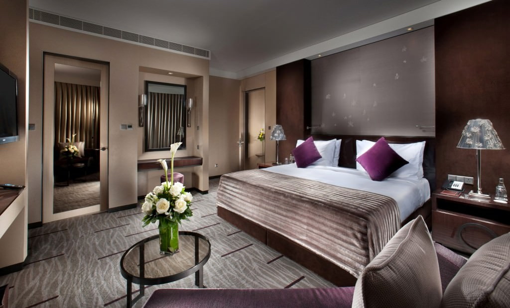 The decoration of the bedroom in shades of brown contributes to a relaxing holiday and complete relaxation