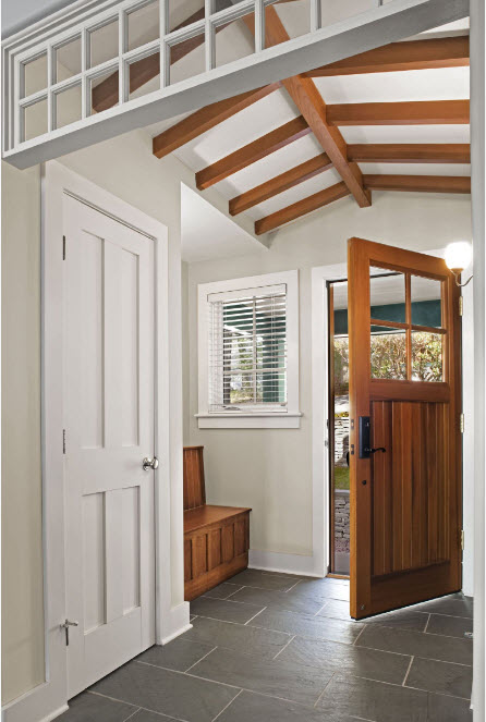- Door reception with lining of slopes made of wood creates a feeling of prosperity.