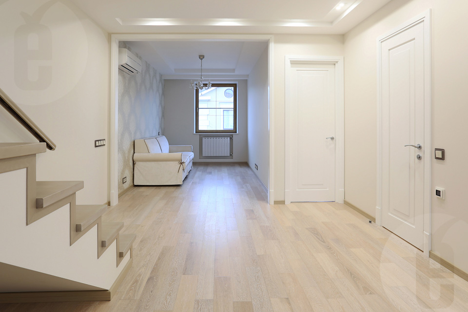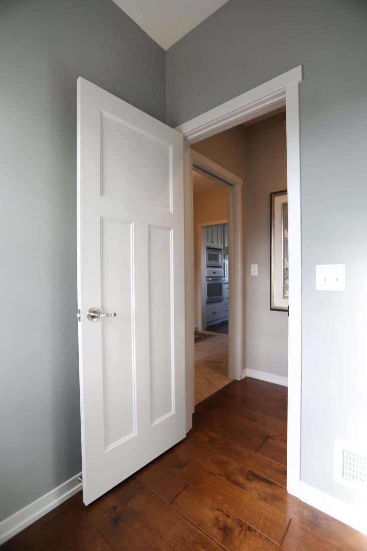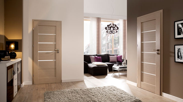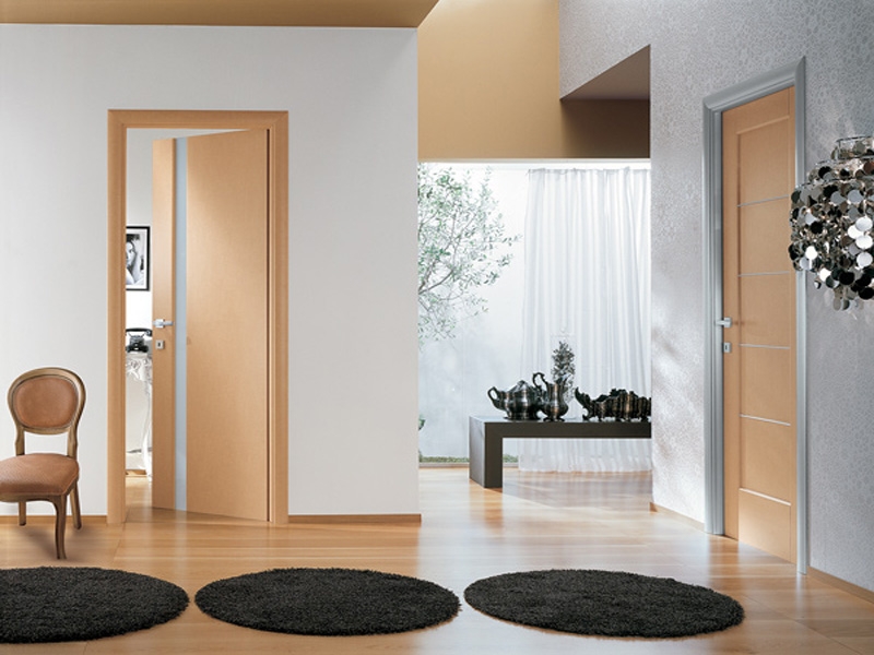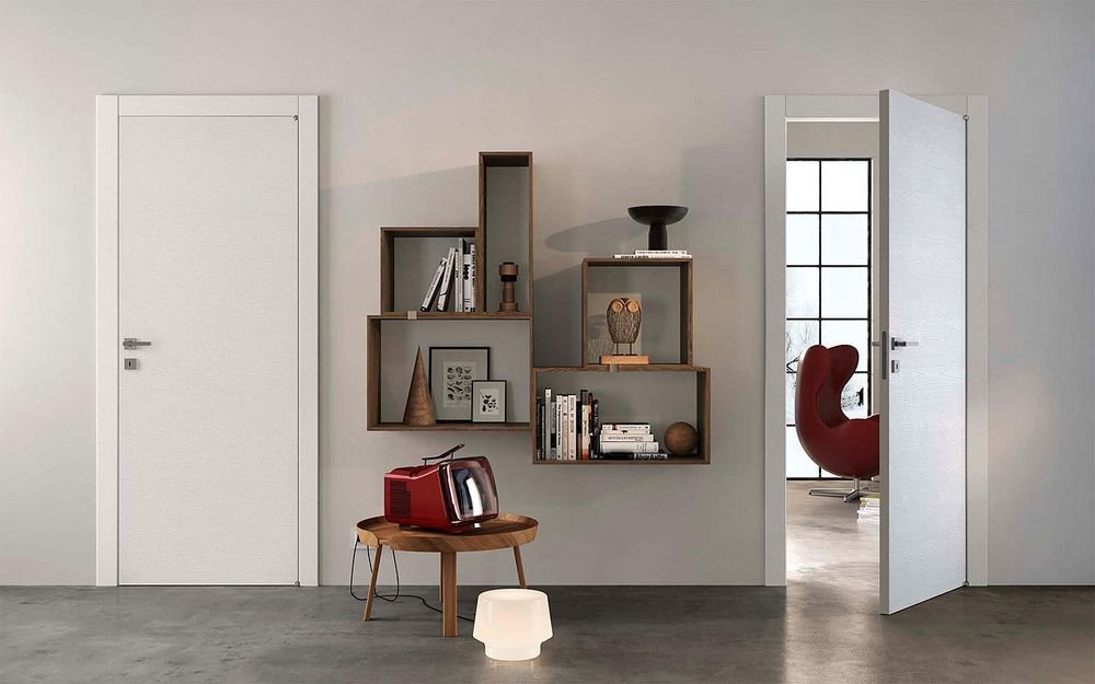 The color of door leaves matches the walls, floors and furniture.