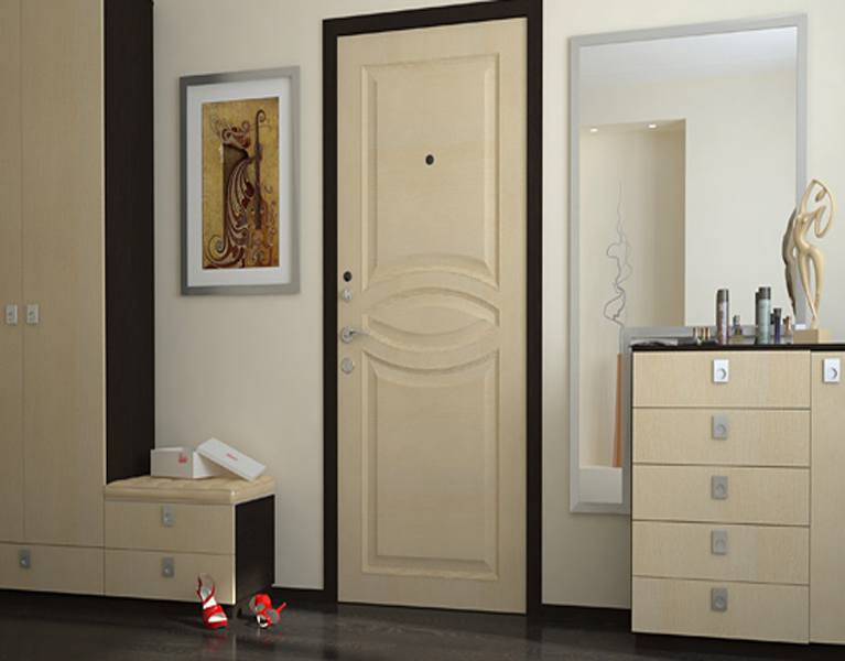 Pressed wood waste derivatives with paintwork are a great way to save money. The doors inside the apartment are subject to lower loads than the entrance, so the operational requirements for them are much lower.