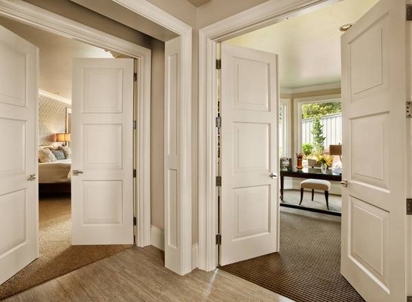 White doors combined with light walls or furniture visually expand the room