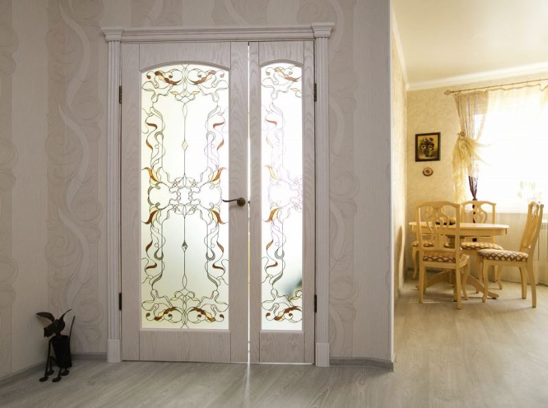 Tip. Doors do not have to be changed. It is easiest to repaint or varnish, remove old paint or use spectacular decorating methods. It is recommended to cover the glass insert of the interior door with a stained-glass film - it will look like new.