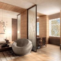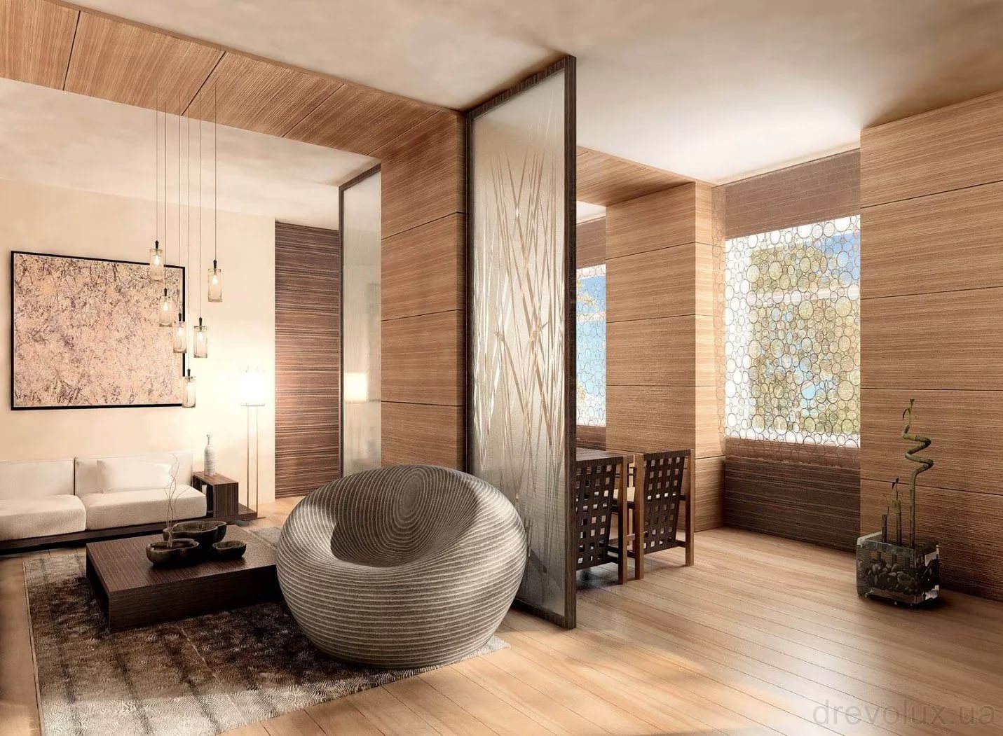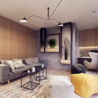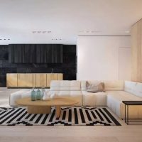 The combination of natural materials brings life to the modern interior of the apartment and can be combined in many ways.