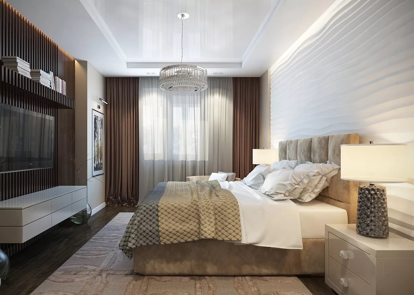 Instead of flashy flowers in the bedroom, try to lighten the space as a whole with subtle textured wallpaper. It is appropriate that a wider palette for wallpaper should go hand in hand with a rational outlook on art. Do not use flashy vases, paintings and trimmings.