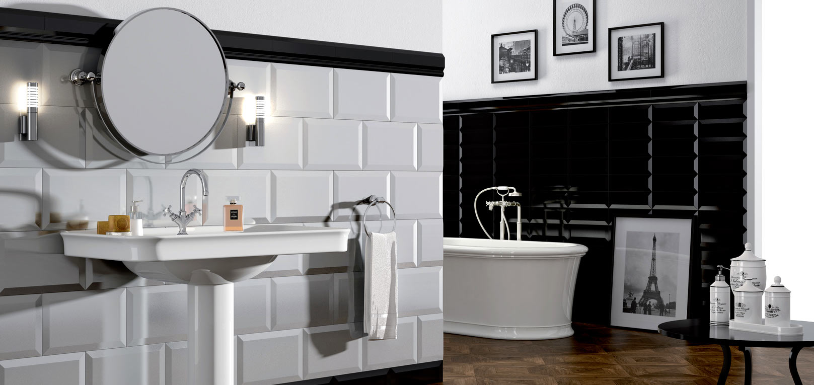 When decorating walls and choosing plumbing and furniture, you can use not pure white, but slightly bluish or beige tones. The first shade of the tile will make the room colder, and the second a warmer look. In the first case, it is worth adding blue or blue decorative elements, in the second - the spectrum of possible tones is much wider: from light brown to deep purple. Another winning design option is a tile with a pattern of light stone. |