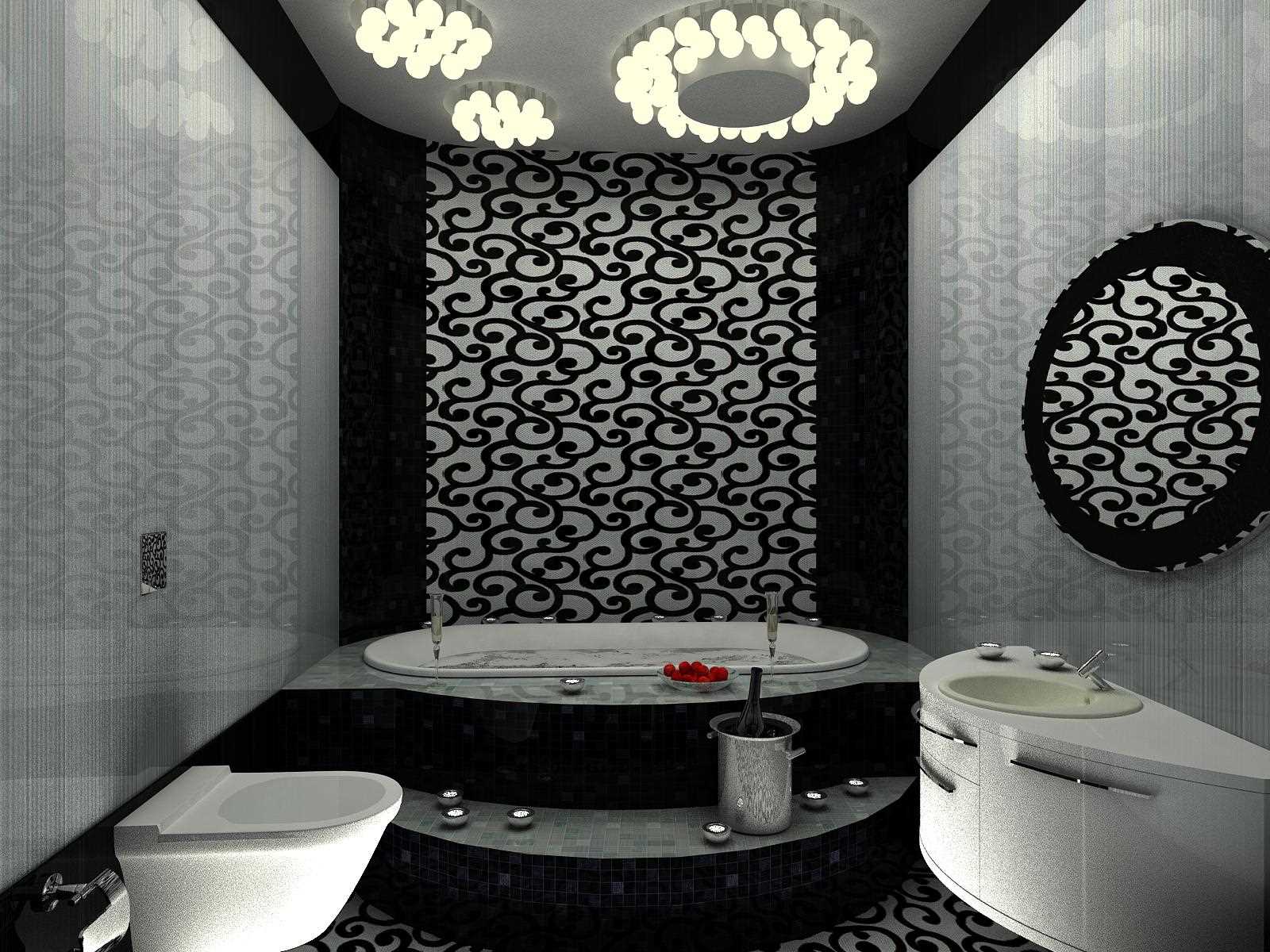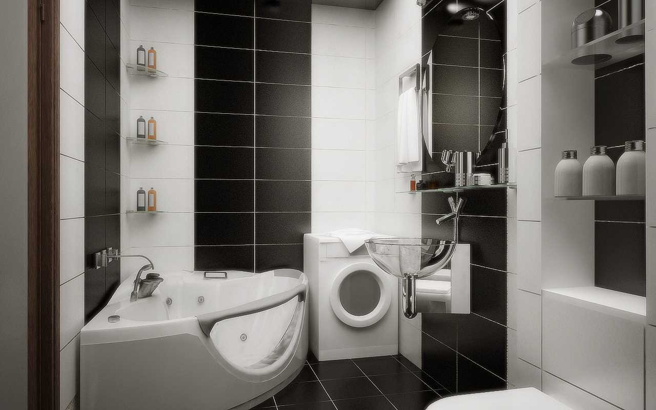 - Black and white combination. Black gives the appearance of the room nobility and sophistication. If the room is small in size, it is worthwhile to rely on lighter colors and leave black for minor accents, for example, lay tiles on one of the walls in a checkerboard pattern, hang a pair of black shelves.