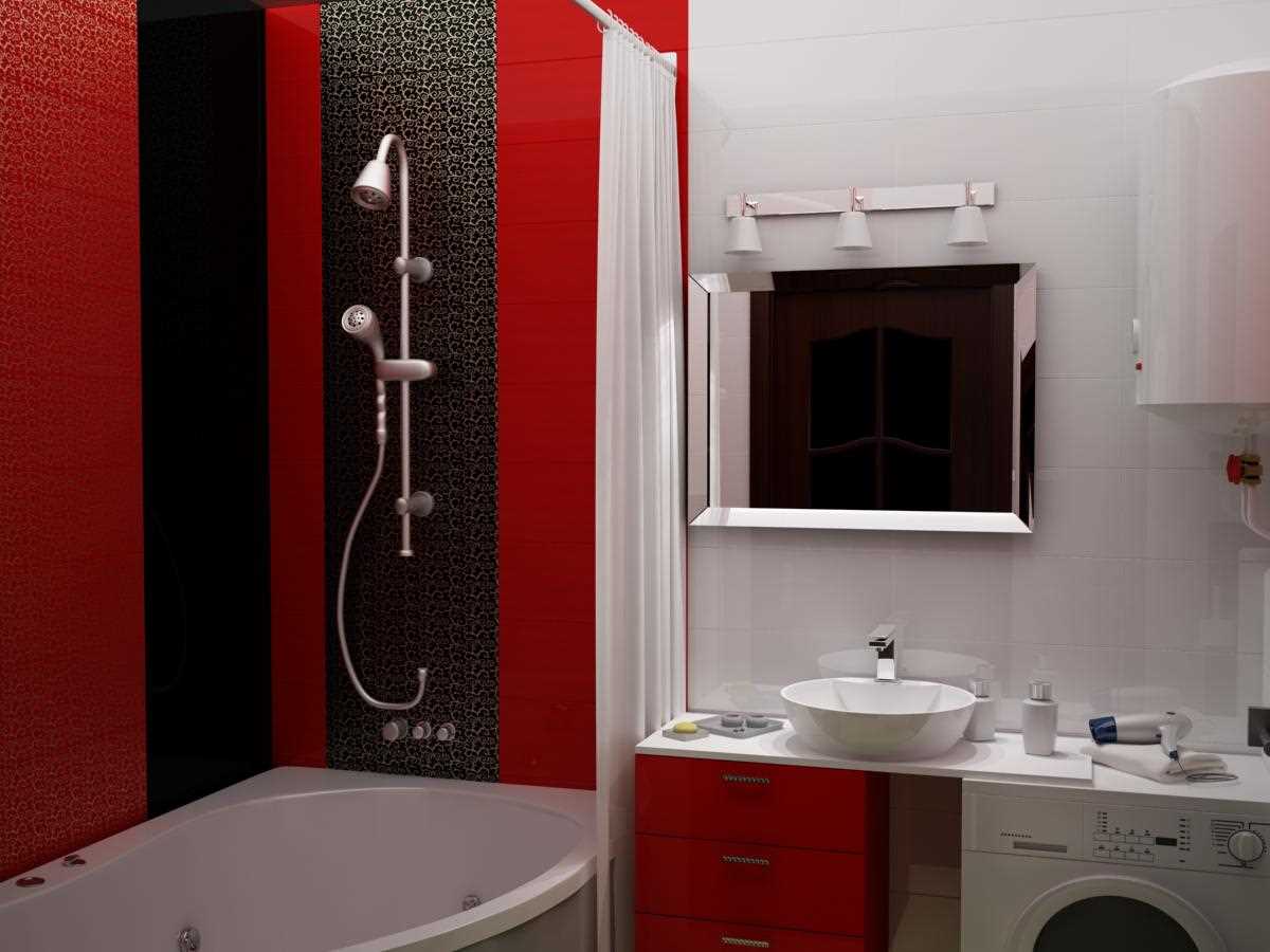 The combination of red and white in the interior of the bathroom will look very beautiful.