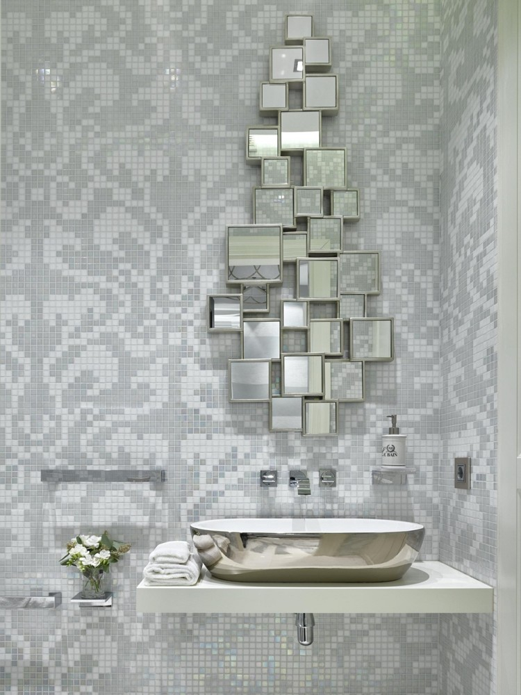 You can choose a mosaic for individual sections of the wall, near the sink or mirror.