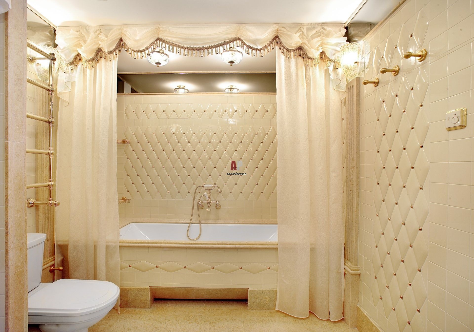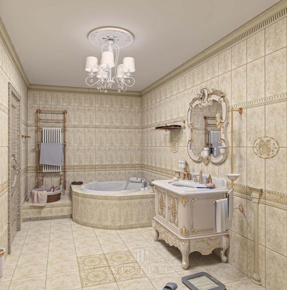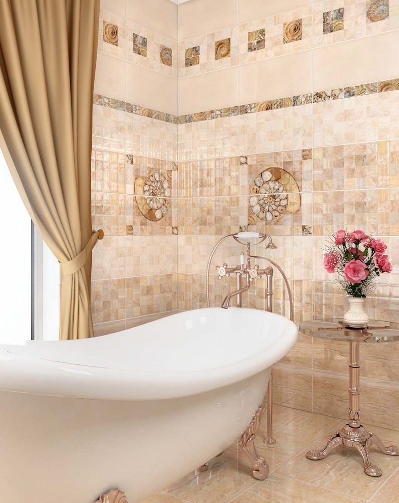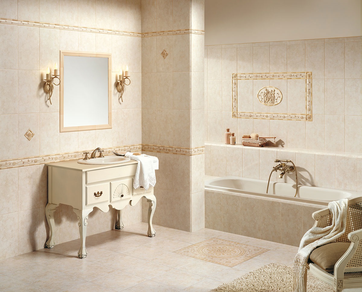 Combination with different interior styles. The bathroom in beige tones can be decorated with the actual features of French Provence, representative art deco or multifaceted eclecticism.