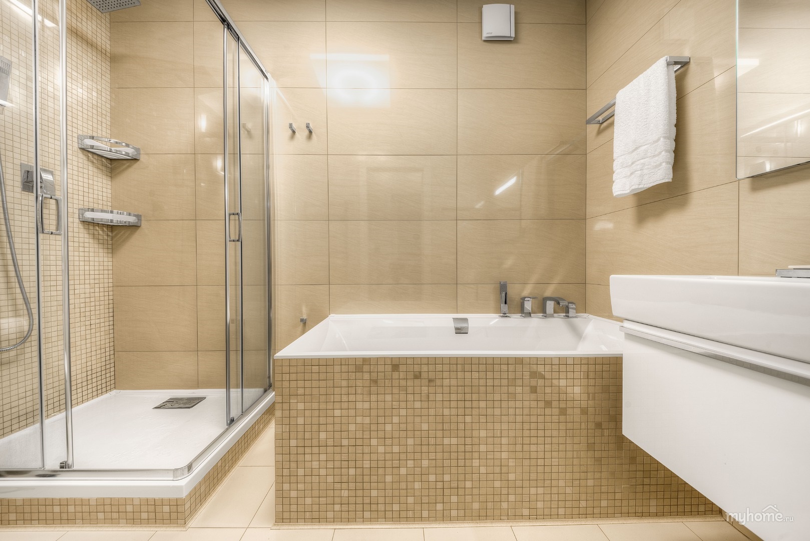 Bathroom design in beige colors: design nuances, furniture and plumbing