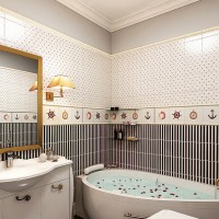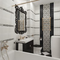 Do not use large tiles: the smaller the space, the less tiles should be. Multicolor tiles with multiple decorative elements should also be discarded. In a small volume, they simply cannot be properly entered. But combinations of two colors-companions, borders, color accents on the walls, etc. are possible and desirable. Try a ceramic mosaic with a pixel pattern that does not go out of fashion when small interestingly matching tiles in tone are arranged in a mess, as if in a mess.