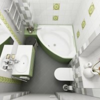 Creating a design project for a small bathroom, choose the angular arrangement of elements of plumbing and furniture. The interior elements themselves are desirable to be round, streamlined, small in size. Draw a few plans, trying to use every decimeter of space to good use.