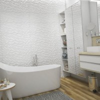 Moisture-resistant plaster is used to decorate individual areas in a small bathroom. It is best to arrange such zones around the perimeter above the ceiling, around the toilet, with a vertical strip on the wall opposite the bathroom. But it is obvious that it is unreasonable to apply such a finish above the bathroom and the sink, near the shower cabin: you have to plaster and paint again after about a year.