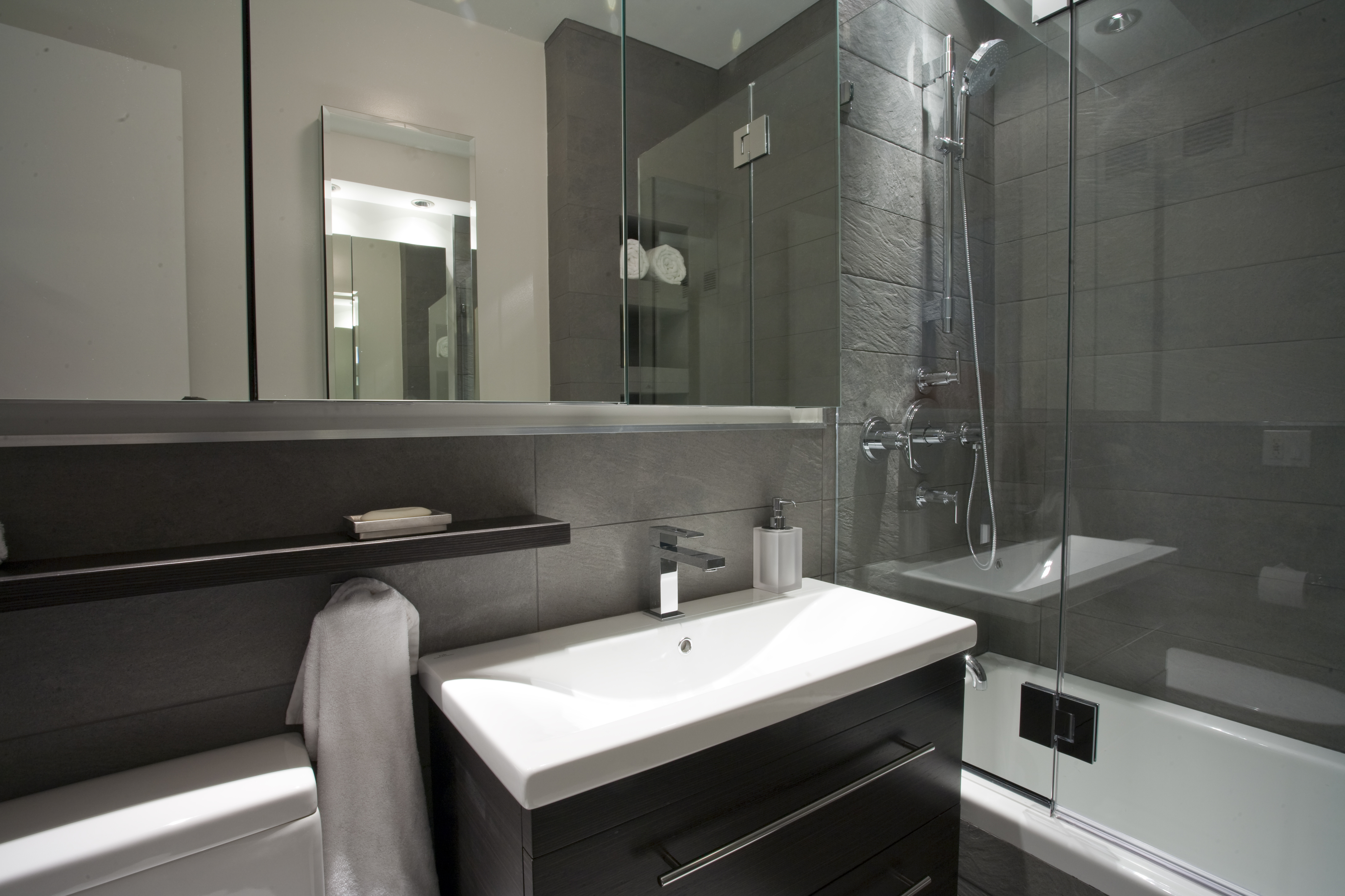 The choice of finishes for a small bathroom