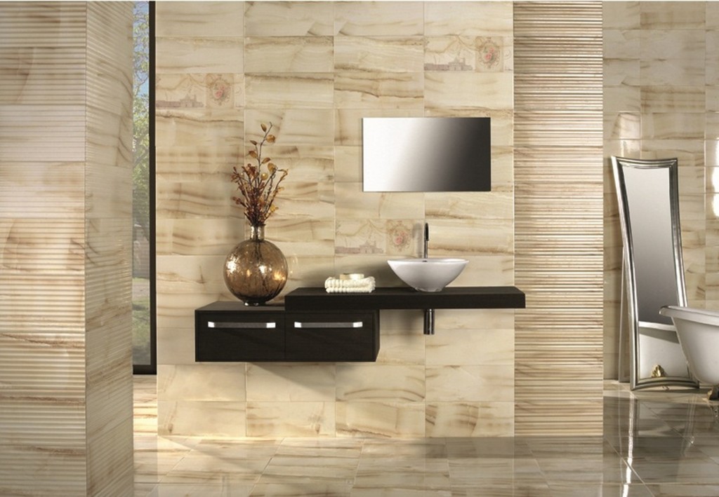 - Tile wall decoration in rooms for sanitary procedures should be aesthetic, especially at eye level, and practical. Walls are often washed and cleaned with household chemicals, often with abrasive particles, to remove plaque from calcium and rust.