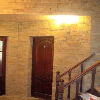 Invoice Application trowel, trowel or brush - This is the aerobatics of plastering. In this case, the master literally draws on the wall, as on a canvas. The simplest application option is a “wild stone." To achieve this texture you need to apply strokes with a spatula at random. This will give the surface the look of raw natural stone. It is also possible to use a trowel with teeth, a hard sponge, a brush, etc. in a variety of ways. To obtain an original and new surface you need not a special tool, but imagination and courage.