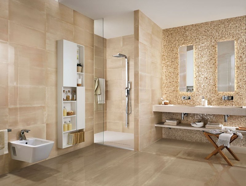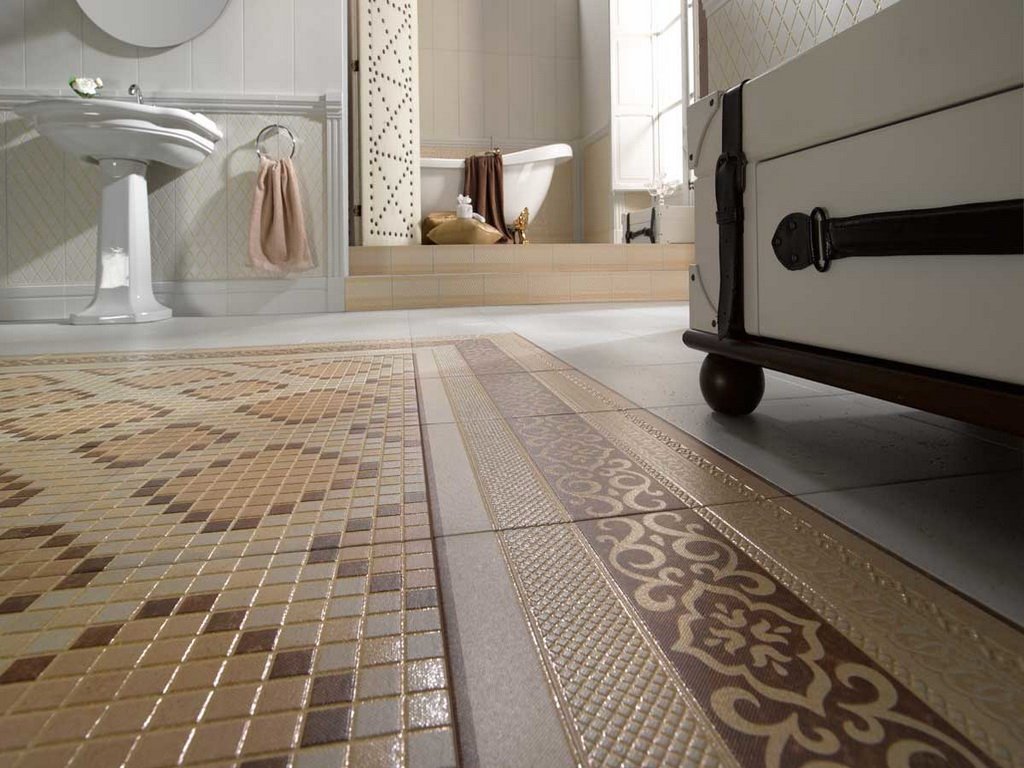 In the interior of the bathroom, combinations of tiles with mosaics are often used.