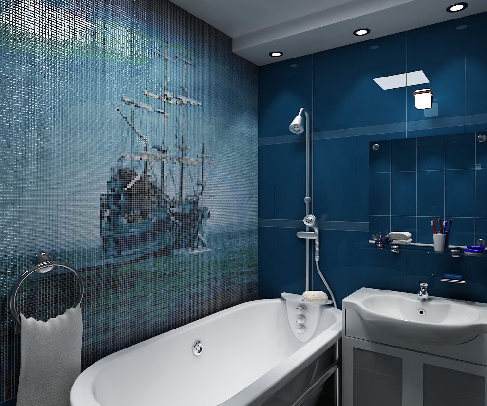 From mosaic tiles, as well as many hundreds of years ago, beautiful pictures and panels are laid out. For bathrooms, pictures of the marine theme are appropriate.